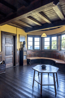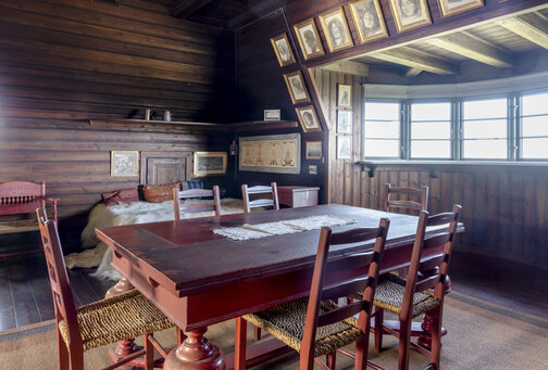 Bare gåturen op ad den stejle bakke mod huset er en perle i sig selv, som kun kommer til at skinne af flere gode oplevelser, når du træder indenfor. Her er alle rum indrettet og farvesat, så huset stort set står, som da polarforskeren, hustruen Dagmar og deres tre børn levede deres liv i huset.