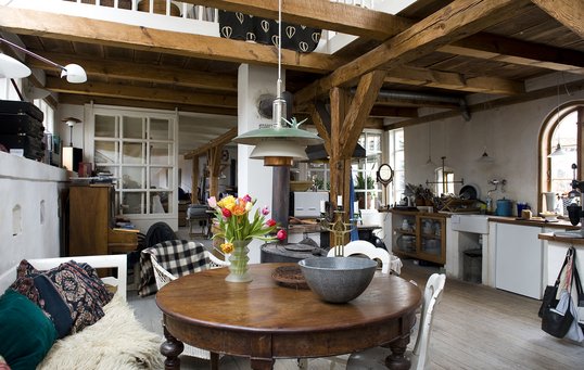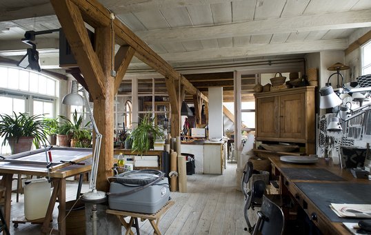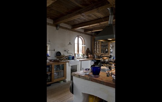 Her bor kunstner og keramiker Ane-Katrine von Bülow, der er kendt for hendes meget stringent designede keramikskåle med sort/hvide grafik-mønstre. Og som ved at beskue skålene får man fornemmelsen af at være vidne til et sjælfuldt, smukt kaos, når man træder ind i hendes hjem.