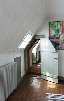 – Da Malergården blev opført i 1934, var byggematerialerne dyre, men arbejdskraften enormt billig. Det kom her på stedet til at betyde, at der gik håndværkere, især en murer, rundt i månedsvis, som Agnete Swane kunne dirigere rundt med. Mange af materialerne er faktisk genbrug. Bjælkerne i loftet i atelieret, en del vinduer og et gulv stammer for eksempel fra en nedlagt villa i Hellerup, så på den måde var Agnete Swane rent genbrugsmæssigt forud for sin tid, forklarer Britta Tøndborg.