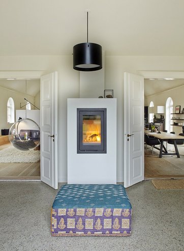Hall'en i det ombyggede og 120 år gamle menighedshus byder gæsterne velkommen med knitrende pejseild. Det gamle, men velbevarede terrazzogulv er slebet og poleret.