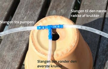Slangerne fra de nederste krukker i systemet leder vandet tilbage til reservoiret. På den måde genbruges vandet og gødningen. Du skal bare sørge for, at reservoiret ikke løber tør.
