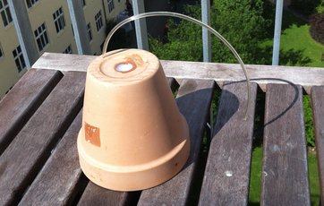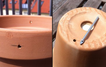 Når krukken er tæt, skal du bore tre små huller i krukken. Et i bunden til vand-slangen og to i toppen, som krukken kan hænge i.