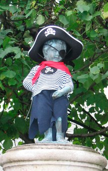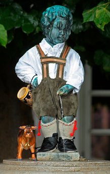 Manneken Pis står stadig i Bogense og får tøj på ved særlige lejligheder.