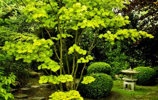- I den japanske have er der plantet en lang række træer af japansk oprindelse. Der er alene over 15 forskellige japansk løn.