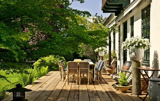 - Der stod allerede et par japanske løn i haven - det største er over 100 år gammelt - og et kæmpe japansk kirsebærtræ i indkørslen, men det japanske islæt vakte først for alvor min begejstring efter et besøg i Tokyo og Kyoto i midten af 1980erne, fortæller møbelarkitekten, der nok er bedst kendt for sine mange smukke havemøbler designet til Trip Trap igennem tiderne.