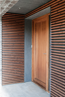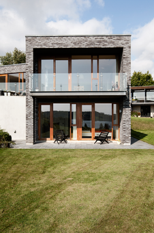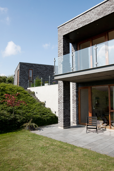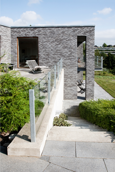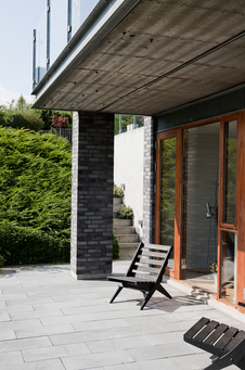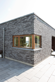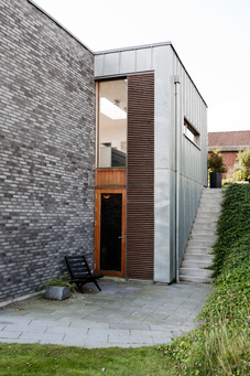 Byggestilen trækker tråde tilbage til de store funkishuse fra 30erne, men modsat tidens trend har Nanna Bering fravalgt de populære hvidpudsede facader. I stedet er valgt en grå teglsten, der spiller smukt op til vinduerne i teak og inddækningerne i zink. På nordsiden har arkitekten også valgt at beklæde hele facaden i zink.