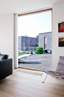 - Udfordringen var at få huset vendt rigtigt mod udsigten, og samtidig skulle vi undgå indkig fra det store etagebyggeri på den anden side af slugten. Endelig handlede det om at få skabt nogle uderum, hvor der er læ. I det gamle hus stod vinden ofte lige ind på terrassen, og det ville vi undgå her, fortæller Nanna Bering.