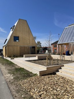 – Det er et eksempelbyggeri, der skal inspirere, og det viser, at det er denne type hus, vi skal vænne os mere til i fremtiden. Vi skal bruge materialer med et lavere klimaaftryk end dem, vi traditionelt har været vant til. Og det er disse huse et godt eksempel på, siger Henrik Bisp.