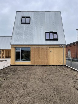 Men sådan har de ikke gjort. Et partnerskab bag projektet ’Levesteder’ har bygget to enfamiliehuse på 147 kvadratmeter med et fundament af skruer, et skelet af træ, isolering af træfibre og en facade af træ.