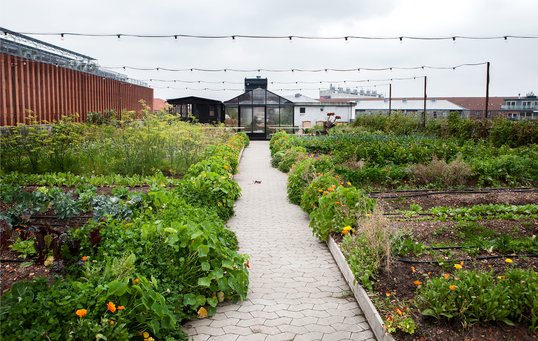 I New York besøgte Livia det 4000 kvadratmeter store taglandbrug på toppen af den gamle flådebygning, kaldet Brooklyn Grange. Da hun kom hjem, researchede hun straks på, hvordan det samme kunne lade sig gøre i København. Og så mødte hun Sofie, der havde kontakt til klimakvartér-projektet, hvor man kendte til bilauktionshuset på Østerbro.