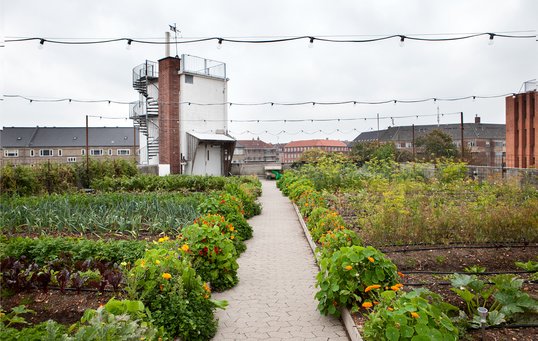 Midt i det halvindustrielle boligområde på ydre Østerbro har 3 unge udlevet drømmen om at skabe et minilandbrug, hvor fokus ikke bare er hyggelige krydderurtebede, men at skabe et fælleskab om en fødevareproduktion, der rent faktisk kan brødføde et par håndfulde lokale med sunde delikatesser i alle regnbuens farver.