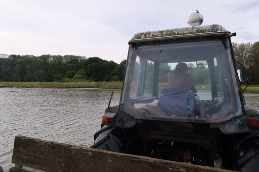 Når traktoren pløjer sig gennem vandet og sandormenes små bjerge på havbunden og derefter bevæger sig ind mellem metertykke egetræer, slanke ahorn og tjørnekrat, bliver man overrasket, når man ankommer til Jens Gregersens lille oase.