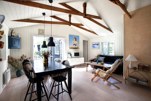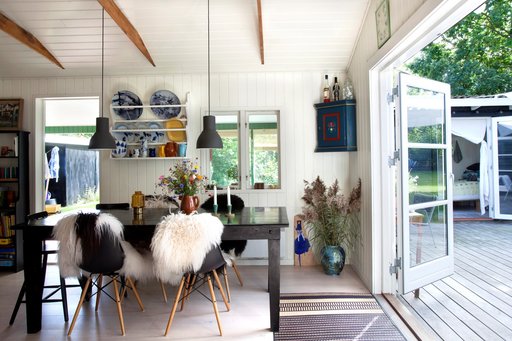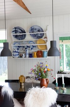 Når man køber et sommerhus, overtager man det som det står, men der var ikke meget af inventaret, parret havde lyst til at beholde, så i stedet fyldte de det med deres egne personlige ting og stil.