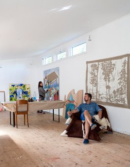 – Jeg tager tit herop om morgenen og arbejder og tager hjem igen om eftermiddagen. En time heroppe svarer for mig til fire timer i byen, hvor man blive afbrudt hele tiden, fordi atelieret ligger i forbindelse med galleriet. Det er også fint dér – og Jesper er bedre til ikke at lade sig forstyrre så meget af det. Heroppe er der en ro, som gør, at jeg kan fordybe mig på en helt anden måde, siger Mette Hannemann.