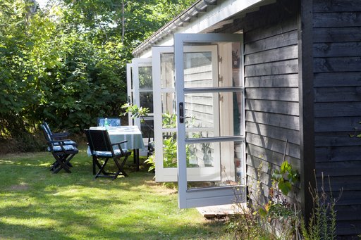 Fra huset er der udgang til en dejlig lun udestue. Foto: Jesper Ray.