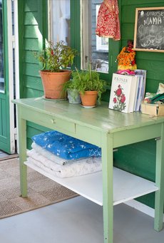 – Huset er fuld af minder og ting, vi har et forhold til. Sengebunden på børnenes værelse, ølkassen i soveværelset og hjørneskabet i stuen har min far, som døde da jeg var ti år, malet, fortæller hun om et lille udpluk af interiøret.