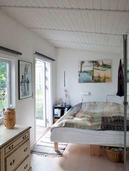 - Jeg havde virkelig ledt længe efter et sommerhus, også inden jeg mødte Mette. Jeg er vokset op med sommerhus og har pløjet rundt efter ét heroppe i Nordsjælland, men det var for dyrt. Jeg havde også set på grunde og tænkte på at bygge ét selv - selvom jeg overhovedet ikke kan bygge. Jeg kunne se mulighederne i dét her - det lå på en stor hjørnegrund, hvor der kunne bygges til, og det hele vendte rigtigt i forhold til lyset og solen, fortæller Jesper D. Lund.