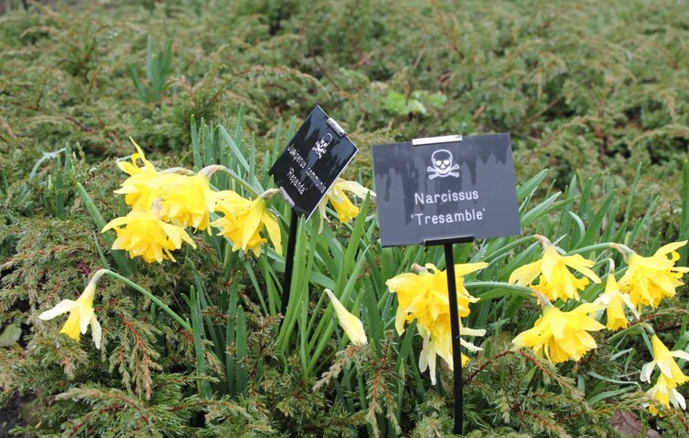 De grønne dele af planten og blomsterne indeholder dog også gift, og en af gifthavens kvindelige besøgende kom ved et uheld til at forgifte sin mand. Hun havde midlertidigt placeret et bundt påskeliljer i et vandglas, fordi hun ikke havde en vase i nærheden. Da hun efterfølgende flyttede buketten til en vase, glemte hun at tømme vandglasset, og hendes mand kom til at drikke blomstervandet, hvilket kostede ham tre dage på hospitalet.