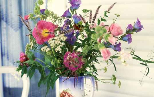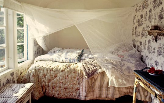 Inventaret er ikke specielt værdifuldt, men Lise Lotte har en særlig sans for at skabe en herlighed ud af lidt. De smukke toilettekstiler, delikate farver og florlette broderede molgardiner samler det hele i en højere enhed.