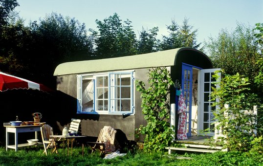 - Sommerhuset består af et lille hus bygget i 1950'erne på 19 kvadratmeter og en cirkusvogn. Grunden er på ca. 1.000 kvadratmeter.