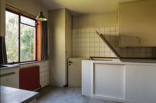 Huset ligger højt hævet over vejen på en skråning med ikke mindre end 9 niveauspring og 13 indvendige trapper. Foto: Kurt Rodahl Hoppe