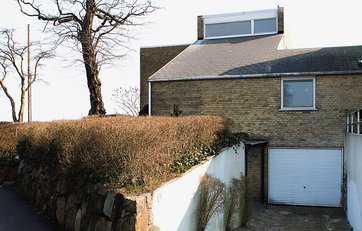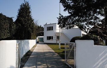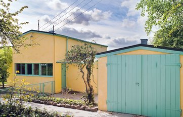 Villaen betragtes som den første funkisvilla i Norden. Det var dog ikke Heiberg selv, der opførte garagen. Han var hverken borgerlig eller formuende og har formentlig måttet sløjfe byggeriet af den ene eller begge årsager. Garagen blev først bygget af en senere ejer, som dog har fulgt Heibergs oprindelige plantegning. Foto: Kira Ursem / Realdania By & Byg