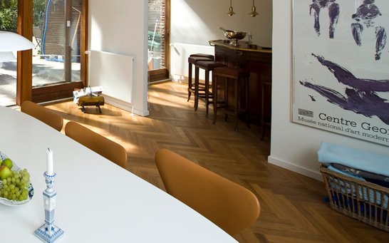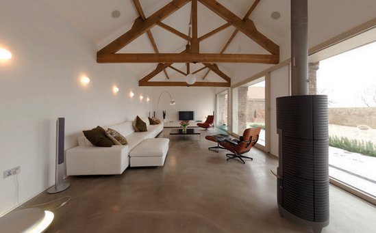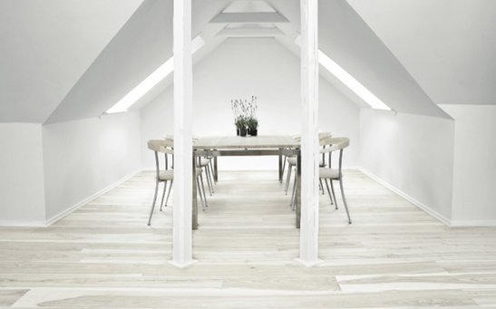 I store rum, hvor der både er trævinduesrammer, køkkenelementer i træ og mange træmøbler, kan et trægulv let blive for meget, mens et betongulv er mere neutralt.