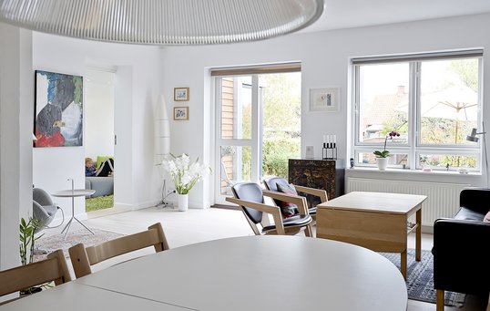 – Vi føler, vi har fået så meget mere plads, uden at vi er gået på kompromis med det originale hus. Drengene har fået fred ovenpå, og vi har fået et dejligt soveværelse. Samtidigt så bruger vi den nye stue meget mere, end jeg havde turde håbe på. Nu flyder vi derude alle fire til en god film eller lektielæsning, og vi har på den måde fået skabt et nyt rum for samvær, fortæller Janne.