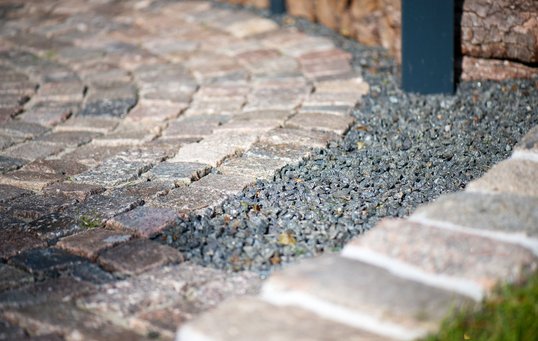 - Der er brugt 4-5 kvadratmeter chaussésten og granitskærver.