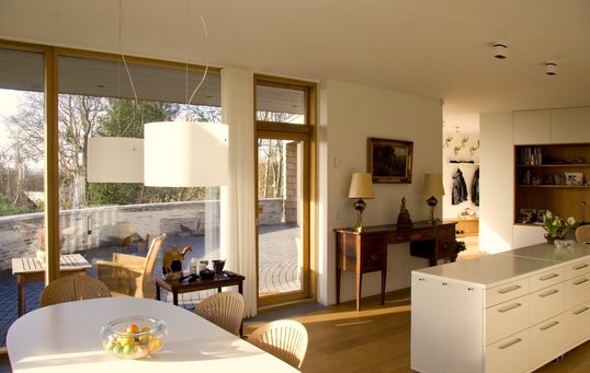 Martin Wienberg, partner i Friis & Moltke, ser det tætte samarbejde med bygherren som det vigtigste. En direkte kontakt og tæt dialog er alfa og omega. Birthe og Knud Brix og arkitekten fandt hurtigt ud af, at de havde samme forståelse for projektet, og dermed var skitseringen, projekteringen og udførelsen uproblematisk.