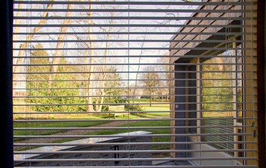 Farveholdningen er afdæmpet, og bestemmes af materialernes egne farver: Indvendigt af hvide vægflader i samklang med egetræets gyldne lød, der ses på gulve, vinduesrammer og listebeklædning. Udvendigt af facadens spån, der med tiden bliver askegrå, så den harmonerer med de lave mure i gråbrændt teglsten og gårdrummenes granitbelægning.