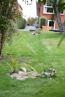 Du kan vælge kun at så græs i regnbedet. Mange vælger dog at plante regnbedet til med blomstrende planter.