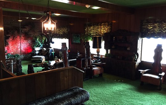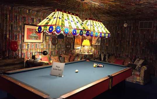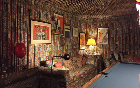 Kælderen var en rigtig mandehule med et billardværelse, der var draperet med 365 meter stof, tv-rummet var udstyret med tre fjernsyn, så man kunne se forskellige sportskanaler på en gang, og i det berømte junglerum løb et vandfald ned ad den ene væg. Både tv-rummet og junglerummet var desuden ekviperet med en bar.