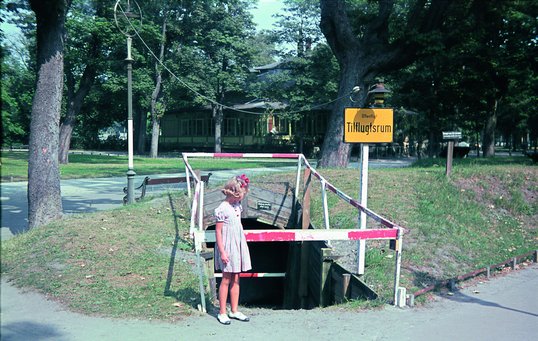 Når der ikke var mulighed for at indrette offentlige tilflugtsrum under bygninger, blev de anlagt i parker eller på små grønne arealer som her. Foto: Thomas Harder, Lindhardt og Ringhof