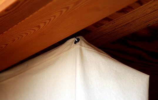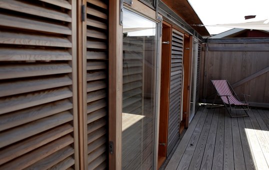 Gennem en trælåge er der indgang til husets gårdmiljø.