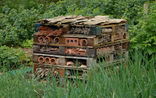 Ved et insekthotel forstås et kunstigt habitat, der forsyner havens insekter med et opholdssted, hvor de både kan overvintre og skjule sig for rovdyr.