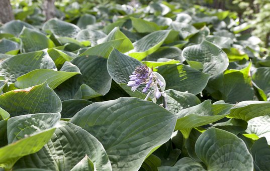 Tag udgangspunkt i skovens udtryk, stemning og opbygning. Større træer udgør skovens loft, herunder mindre træer, buske og til sidst et bunddække af planter, der tåler skygge. Bind de forskellige lag i top og bund sammen med enkelte klatrende planter. Klematis eller klatrehortensia egner sig godt til formålet.