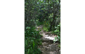 I udkanten tæt på havens hegn eller hæk kan du skabe din egne lille naturoplevelses-skovsti med store buske og træer som plantes relativt tæt. Tjørn, hassel og eg kan være træarter til formålet. Stien kan bare være en enkel slynget grussti eller selvtrådt.