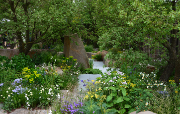Læg til slut tilfældige sten eller træstubbe som en del af den naturlige kulisse.
