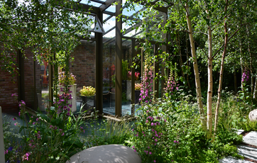 Mange tror fejlagtigt, at drivhuset skal ligge i fuld sol. Det behøver det ikke. Du kan sagtens placere dit drivhus i nærheden af et eksisterende træ eller en helt gruppe som her uden at gå på kompromis med drivhusets øvrige plantefunktioner. Desuden får du et glasrum forærende, hvor du kan trække naturen helt indenfor.