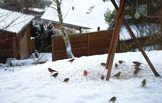 Når frosten bider, og sneen ligger dyb og tung, har fuglene for alvor brug for din hjælp til at finde føde.