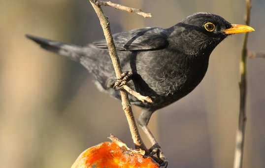 - Rådne æbler på jorden: Bogfinker, rødhalse, drosler, solsorte, sjagger