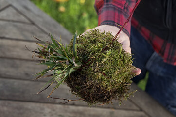 Omslut kuglen med et lille tæppe af mos, og bind det sammen med sejlgarn, wire eller anden tråd.
