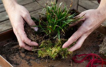 Du har nu lavet din helt egen Kokedama og mosbolden kan hænges på grene, i vinduer eller lægges på fade. Kokedamaerne kan klippes og trimmes og med tiden kan de blive til små dekorative planteuniverser.