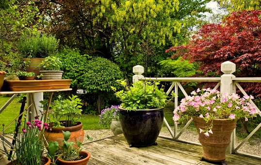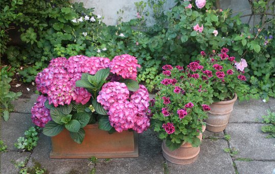 Hvis krukkerne er små og står på terrassen et solrigt sted, kan det være nødvendigt at vande hver dag eller flere gange om dagen, når vejret er varmt, og solen skinner.