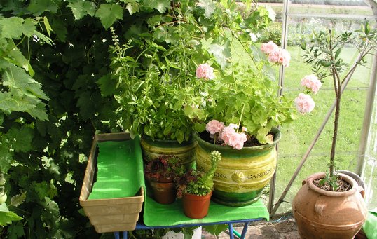 Af den grund kan der være brug for en form for vandingsanlæg i drivhuset. Fx bruger en udvokset agurkplante 3-4 liter vand i døgnet og en tomatplante 2-3 liter. Har du drivhus, så sørg for god udluftning på alle varme og solrige dage, eller imens du på ferie.