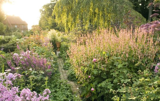 Gode planter til sensommerhaven er stauder, hyld, grønne buske, hortensia og Dahlia.