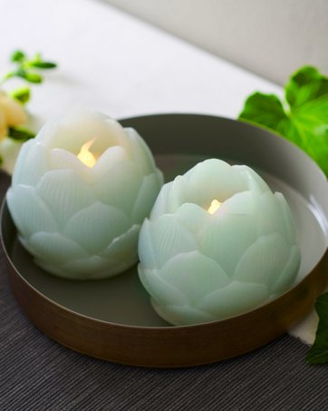 Hvis du ønsker kunstige lys, der ser så realistiske ud som muligt, så vælg nogle, der er fremstillet i paraffin eller stearin, som for eksempel de batteridrevne LED-lys ”Helene” fra Sirius. De lotusformede lys er lavet af ægte stearin og har indbygget timerfunktion, der kan indstilles til at være tændt i 6 timer og slukket i 18 timer. Vær opmærksom på, at heller ikke kunstige stearinlys kan tåle for meget varme, så hold dem væk fra direkte sollys. Mål: 7 cm i diameter og 6,7 cm i højde. Pris: 79 kroner.
