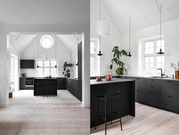 Murermestervillaer er svære at bygge til. Her er det dog lykkedes arkitekt Anders Lind at lave en velproportioneret køkkentilbygning. Det runde vindue i gavlen giver karakter til det nye og højloftede køkken og ser ud, som om det altid har siddet der. Netop ved valg af nye vinduer til ældre huse kan det give god mening først at spørge en arkitekt til råds. Foto: Danske BoligArkitekter