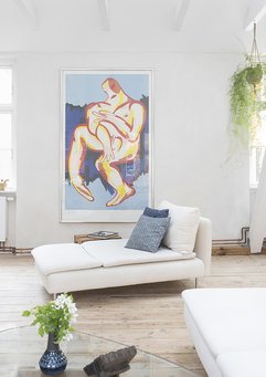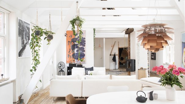 Og så var der lige udfordringen med at få byggematerialer op i lejligheden via den gamle, smalle og skæve opgang. Parret måtte hyre en flyttelift til at løfte større ting som køkkenbordplade og de store billeder op til 2. sal. Dog udfordringer, som parret fandt både sjove og udfordrende at løse.